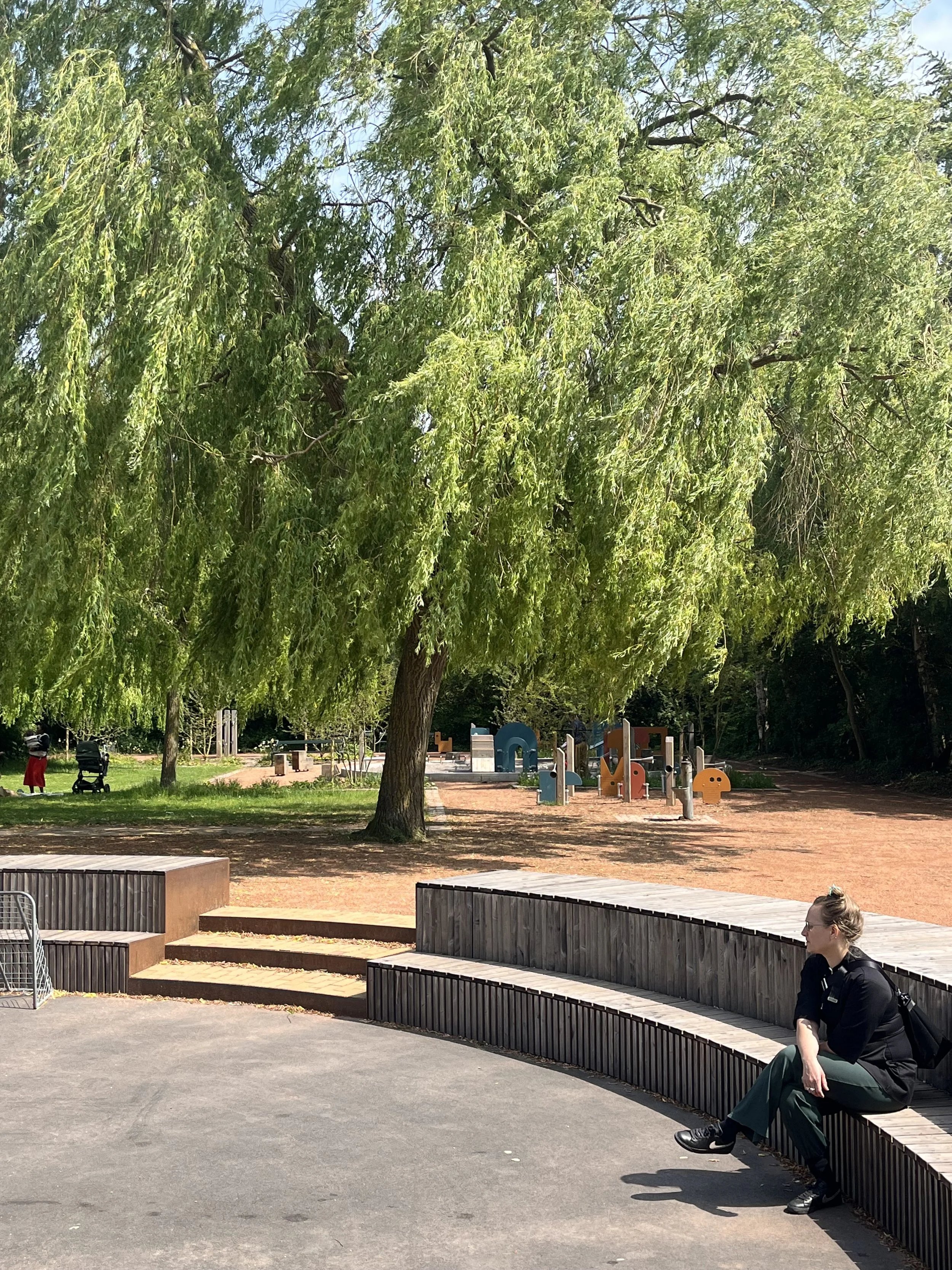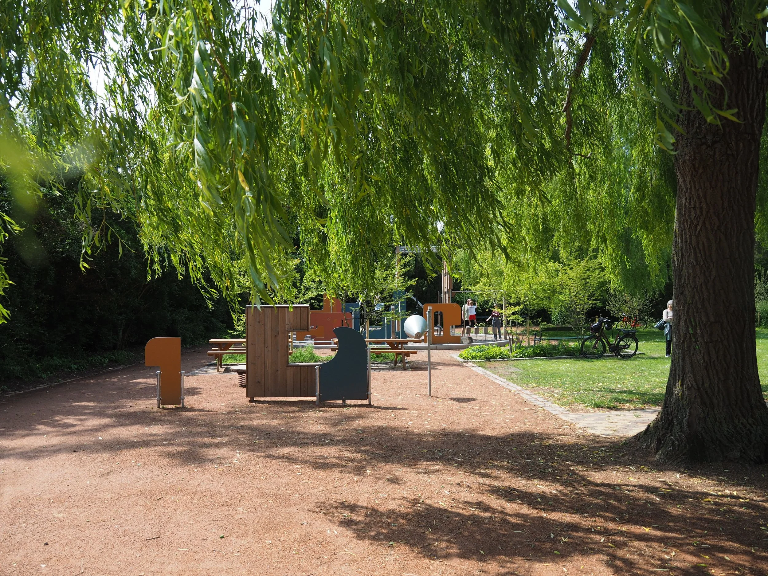 I renoveringen har vi fokus på øget tryghed, rum til flere, samt genanvendelse af materialer. Vi har samarbejdet med blandt andet Kulturpiloterne og Elverdal, som har udviklet parkens legefulde inventar.