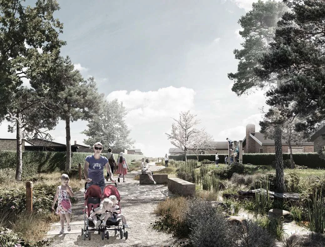 Udfoldelsen af Esplanadeparkens potentialer betyder, at bydelen tildeles et grønt byrum med kvaliteter, der kan fuldende paletten for rekreative anvendelsesmuligheder i området. Nord og øst for bydelen finder man et bælte af skov, der har stort potentiale for friluftsaktiviteter såsom løb, ridning, cykling etc. Syd for findes Strandparken, der udgør et naturpræget bindeled mellem byen og lystbådehavnen. Her vi forslår udviklingen af et maritimt center, der faciliterer alskens former for vandsport og fremmer en stærkere kobling mellem bydelen og havnen. Esplanadeparken skal som det centrale og sammenbindende, rekreative rum fremme fællesskaberne med aktiviteter, der samler forskellige brugergrupper. De nye tværgående forbindelser bliver både samlende for bydelen og det, der åbner området op for omverdenen.